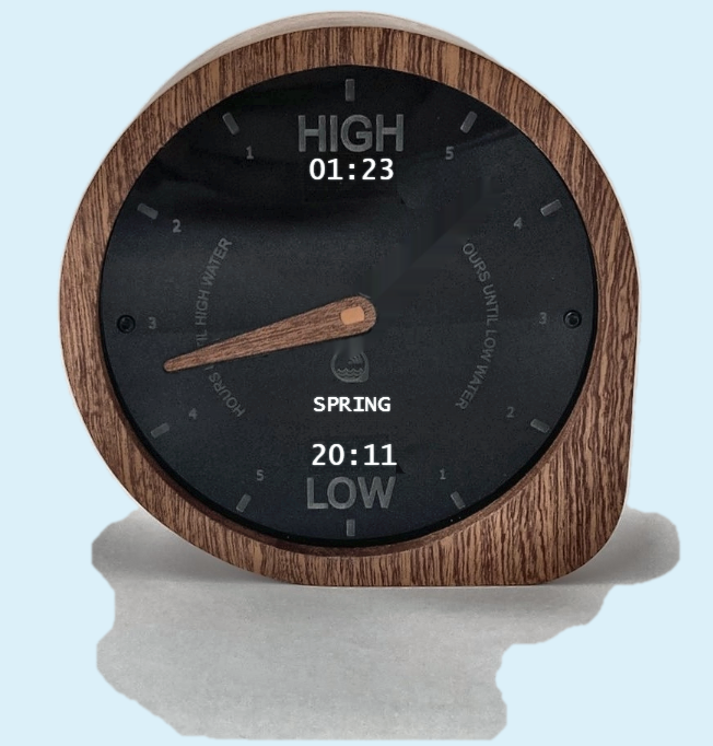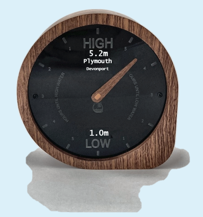 A modern WiFi-connected tide clock that gives you accurate real-time tide times and heights for your location.