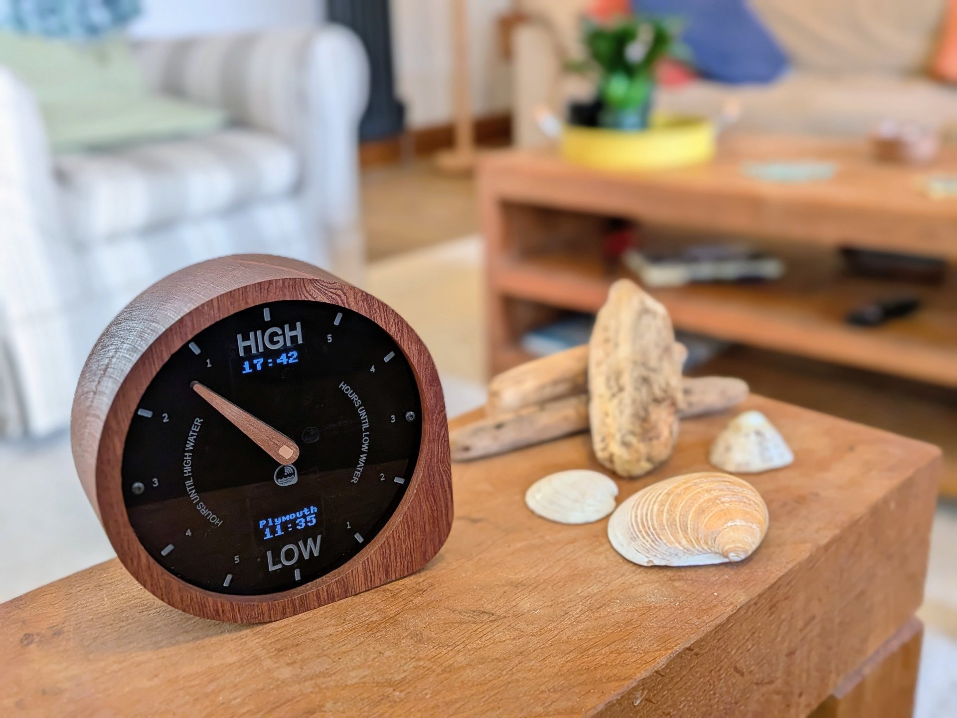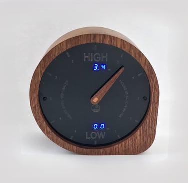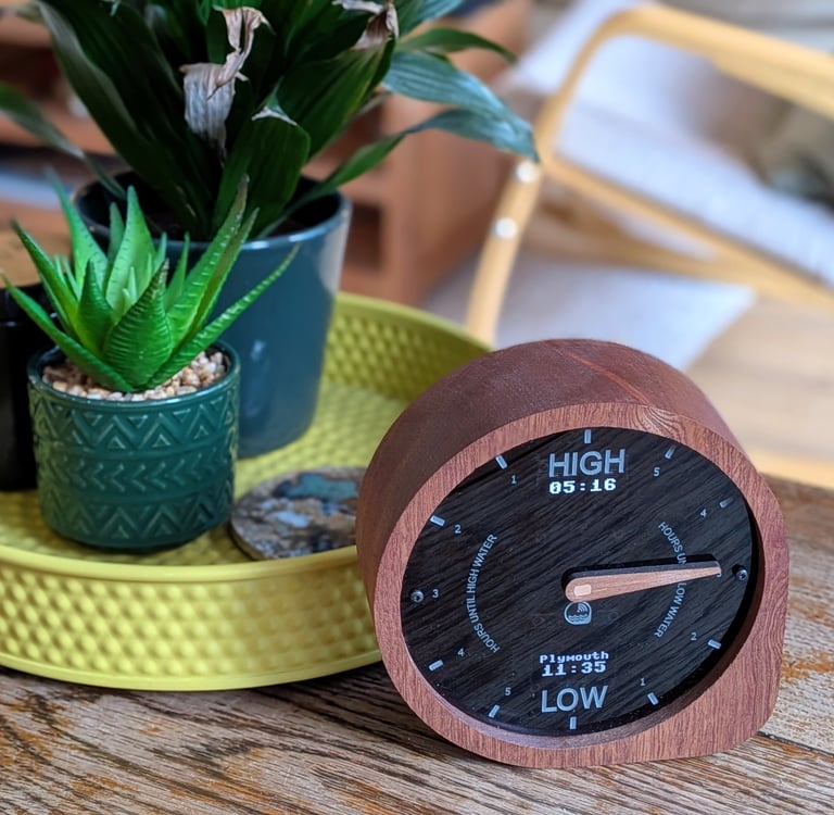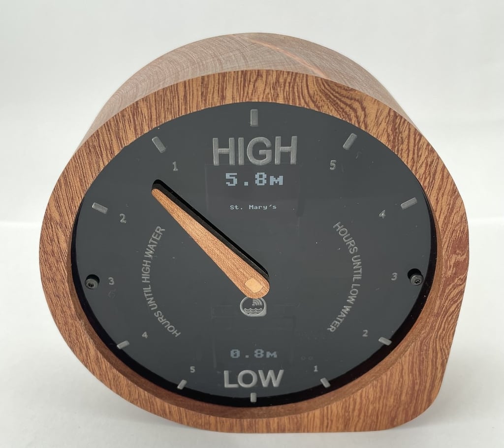 A modern WiFi-connected tide clock that gives you accurate real-time tide times and heights for your location.