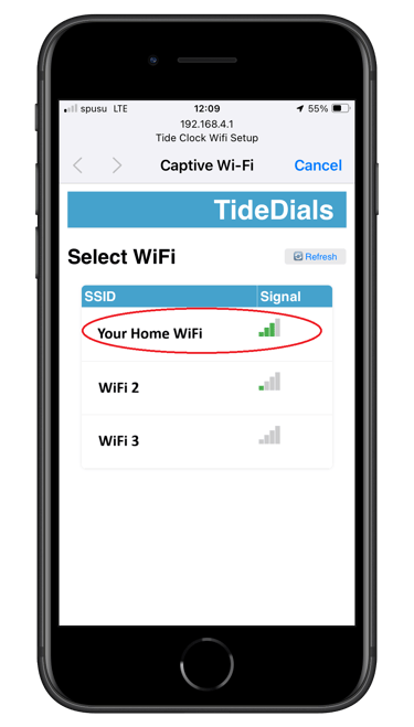 Select “Connect” - The clock will automatically reboot and connect to your Wi-Fi. This can take a couple of minutes.